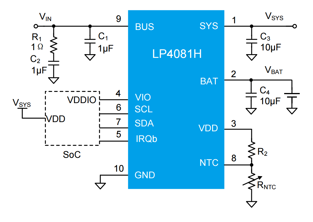 The LP4081H is an ultra-low power linear charger targeting at wearable applications protected up to 16V input voltage. It contains a linear charger to charge the Li-ion battery. An I2C interface is offered for programmability and flexibility of the device. The charger has an ideal-diode mode for high efficiency and low heat operation. The LP4081H integrates the power path management function to support SoC powerup even with a deeply-discharged battery. The LP4081H features 150mΩ low Rds,on of the BAT_FET from the battery to the system to achieve high discharge efficiency and low heat. The LP4081H provides rich protections, including the input Under-volage lockout protection (UVLO), input overvoltage protection (OVP) and system short circuit protection (SCP).The typical quiescent current of LP4081H is 0.6-µA and the battery current is reduced to 0.4-uA in ship mode.The whole system is in a 10-pin 3 X 3 DFN package.